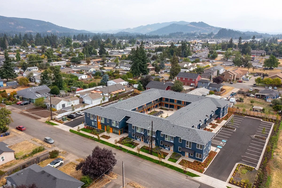 Alma Apartments is a 39-unit affordable housing development in the North Springfield neighborhood. These apartments will provide a mix of studio, one-bedroom, and two-bedroom units for low-income seniors, individuals with disabilities, and survivors of domestic violence. The courtyard-style building has robust community space designed to promote security, foster community building, and complement existing neighborhood buildings.