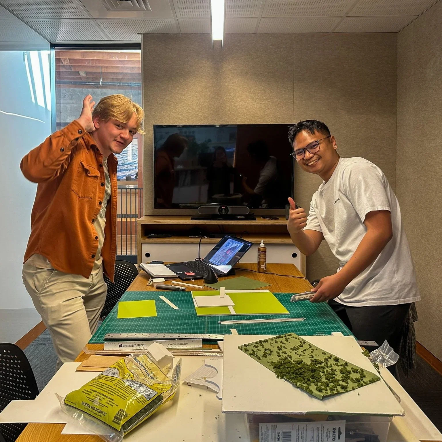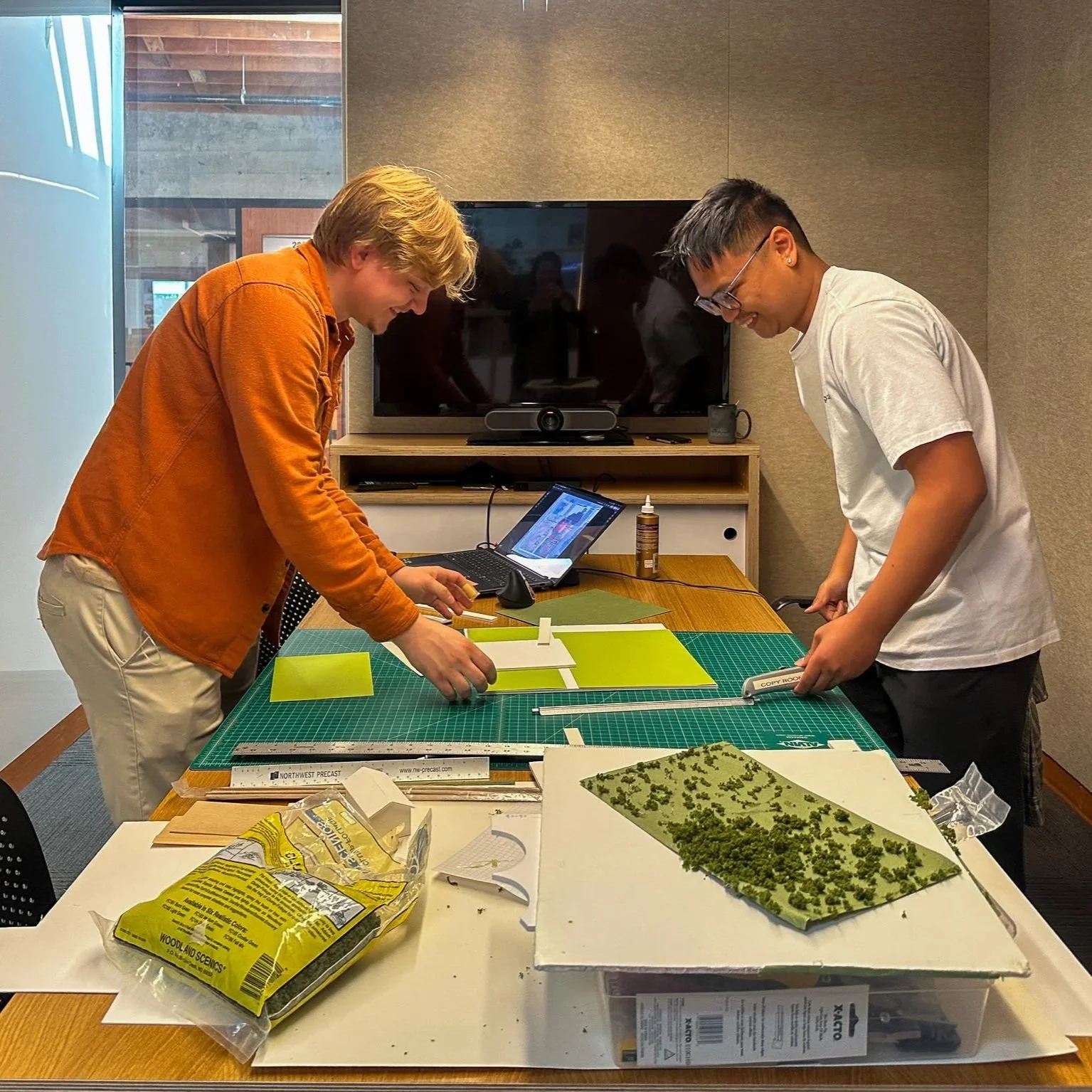 In addition to sitting in on stakeholder, consultant, and OAC meetings for a variety of projects, Wyne and Donovan visited projects under construction. The latter included the LCC Building 16 renovation and Bethel School District’s Danebo Elementary School gym and classroom expansion. With John Rowell, Lorri Nelson, Frank Visconti, and Paul Harman, they participated in early design meetings and produced preliminary drawings for a new project. As part of this exploration, Wyne and Donovan built a site model and learned how to produce a 3D-printed model of one of the design ideas.