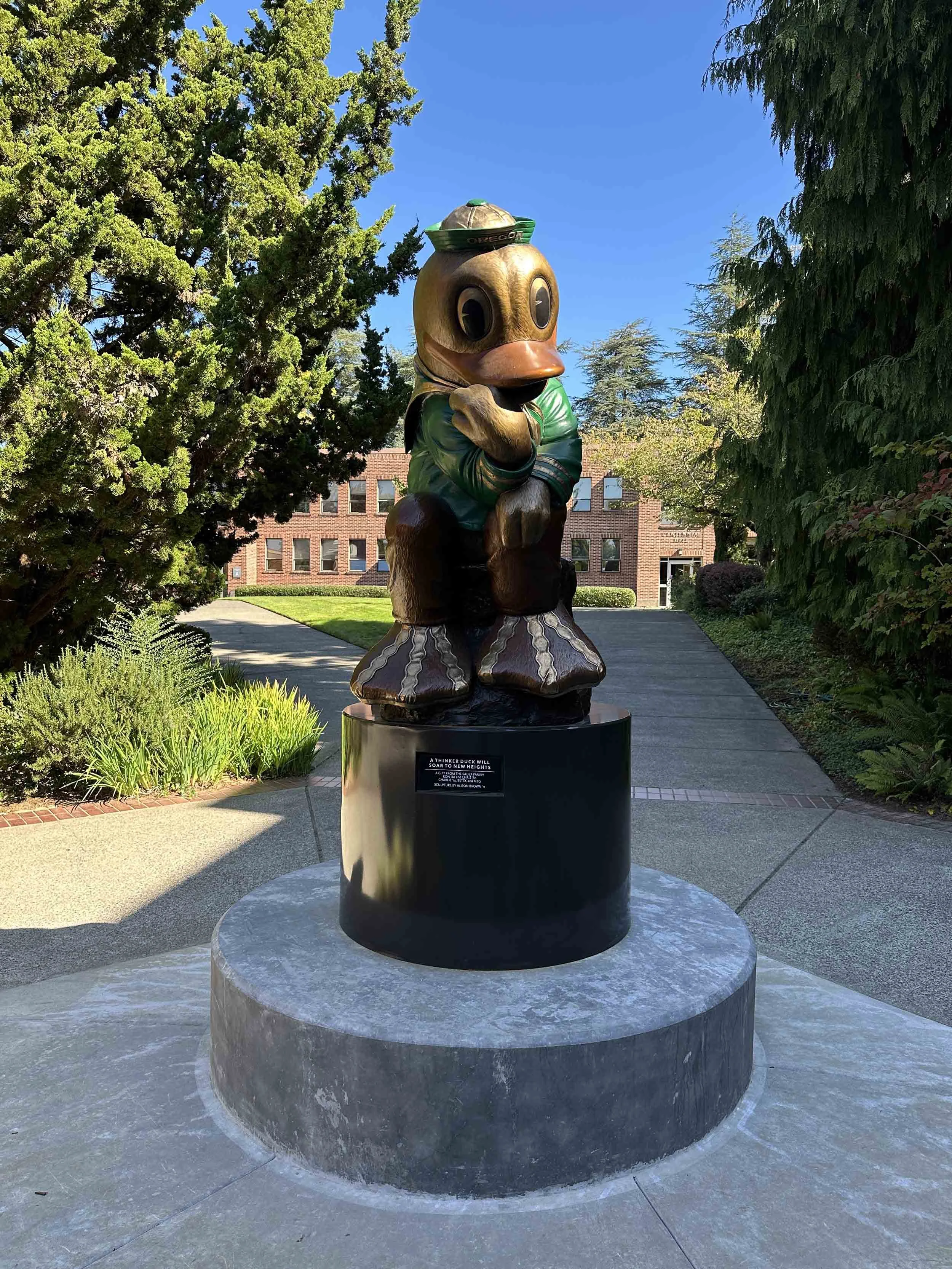 Highland Hall, Lever Architecture, University of Oregon, Portland Campus. A great big thanks to Justin Fowler, Director of the Portland Architecture Program, for giving us a tour of Highland Hall. Below: Highland Hall interior; Innovation Building, TVA Architects; Duck statue, Alison Brown.