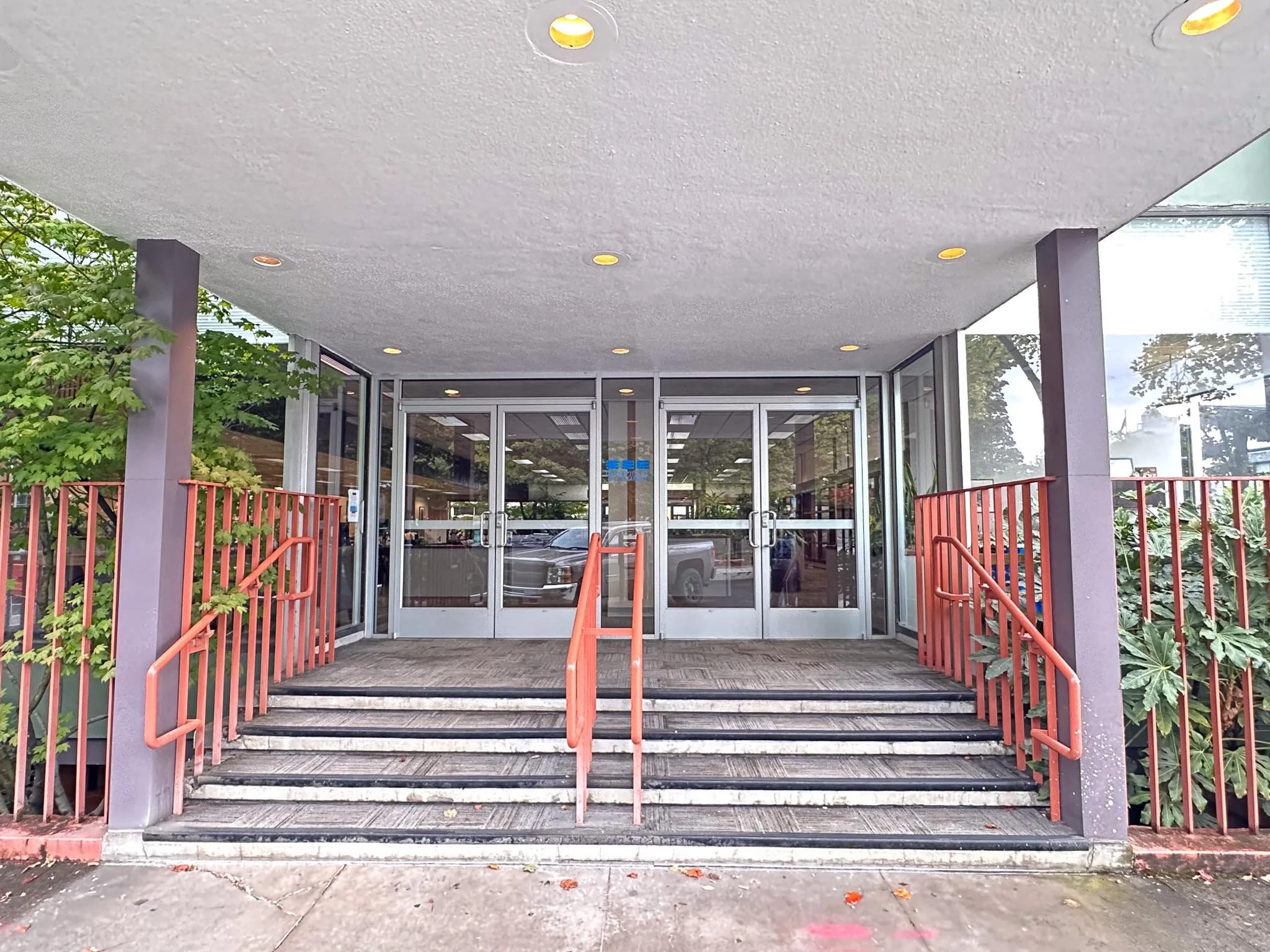A light refresh of the exterior preserved the building’s distinctive, textured concrete panel exterior.