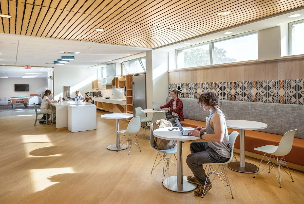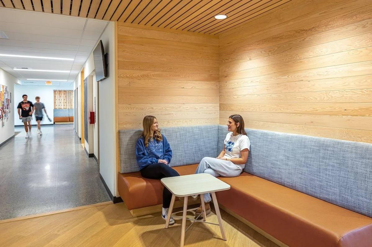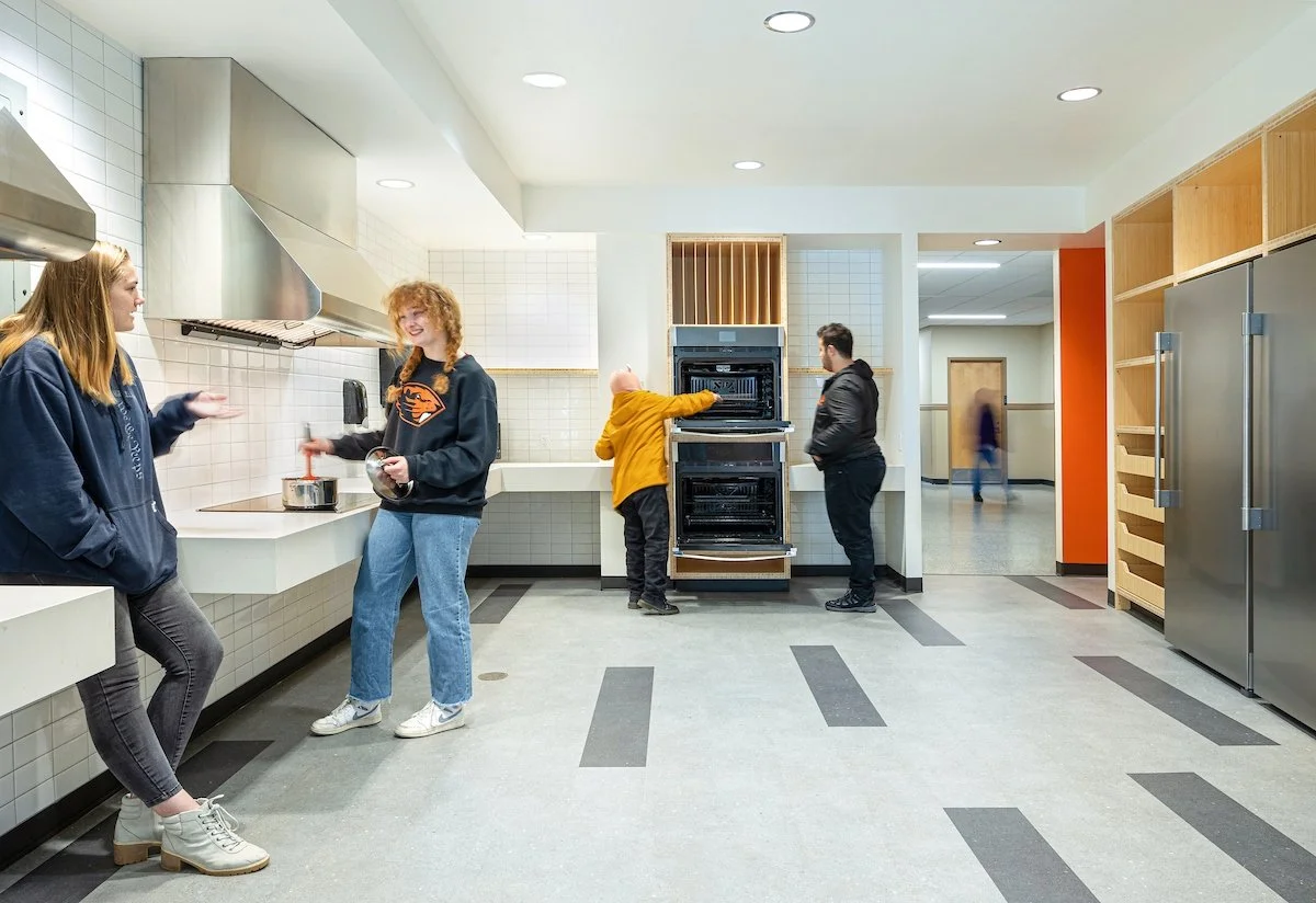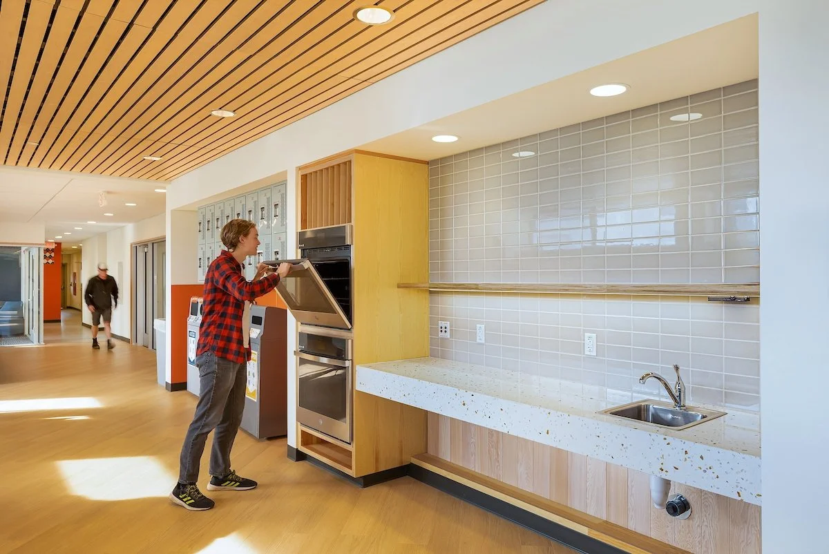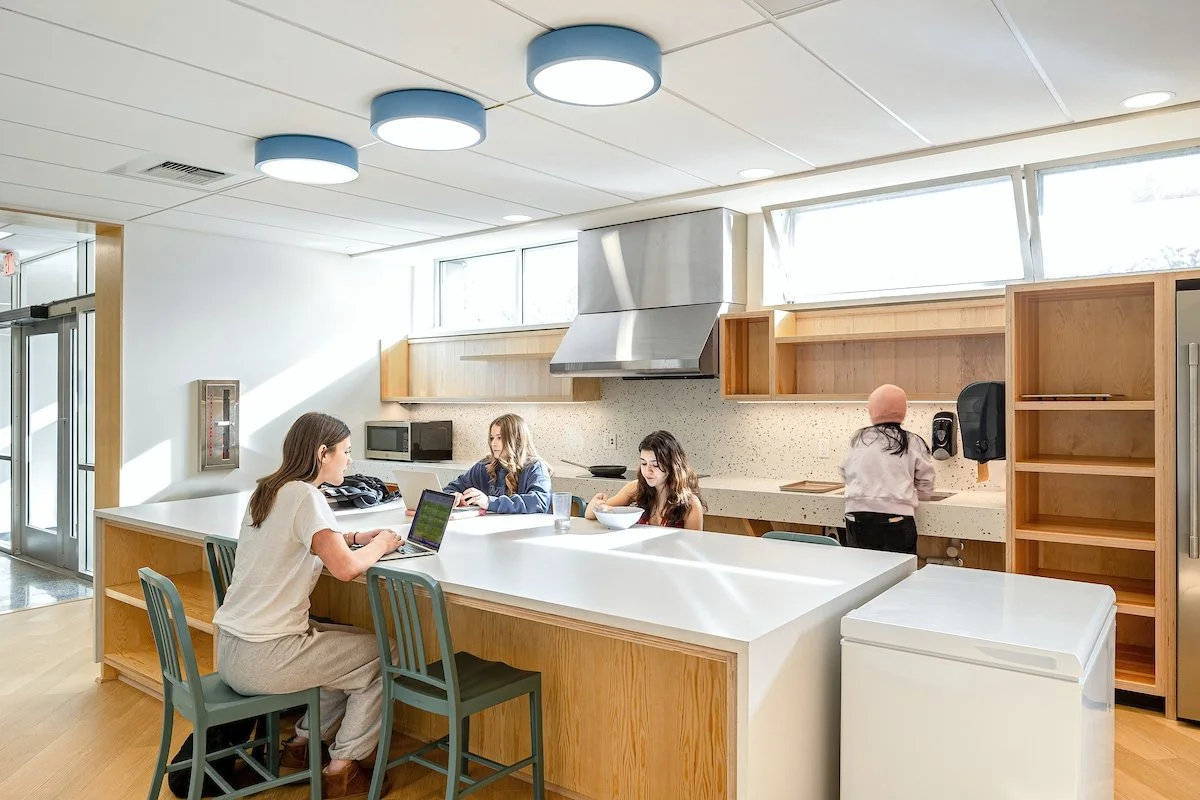 Many of the students in these residential halls are living away from family for the first time. Meal preparation and gathering is an important part of creating a new home for these students. The project catalyzes this essential form of community-building by providing comfortable, usable, and warm spaces to meet new people and share a meal.