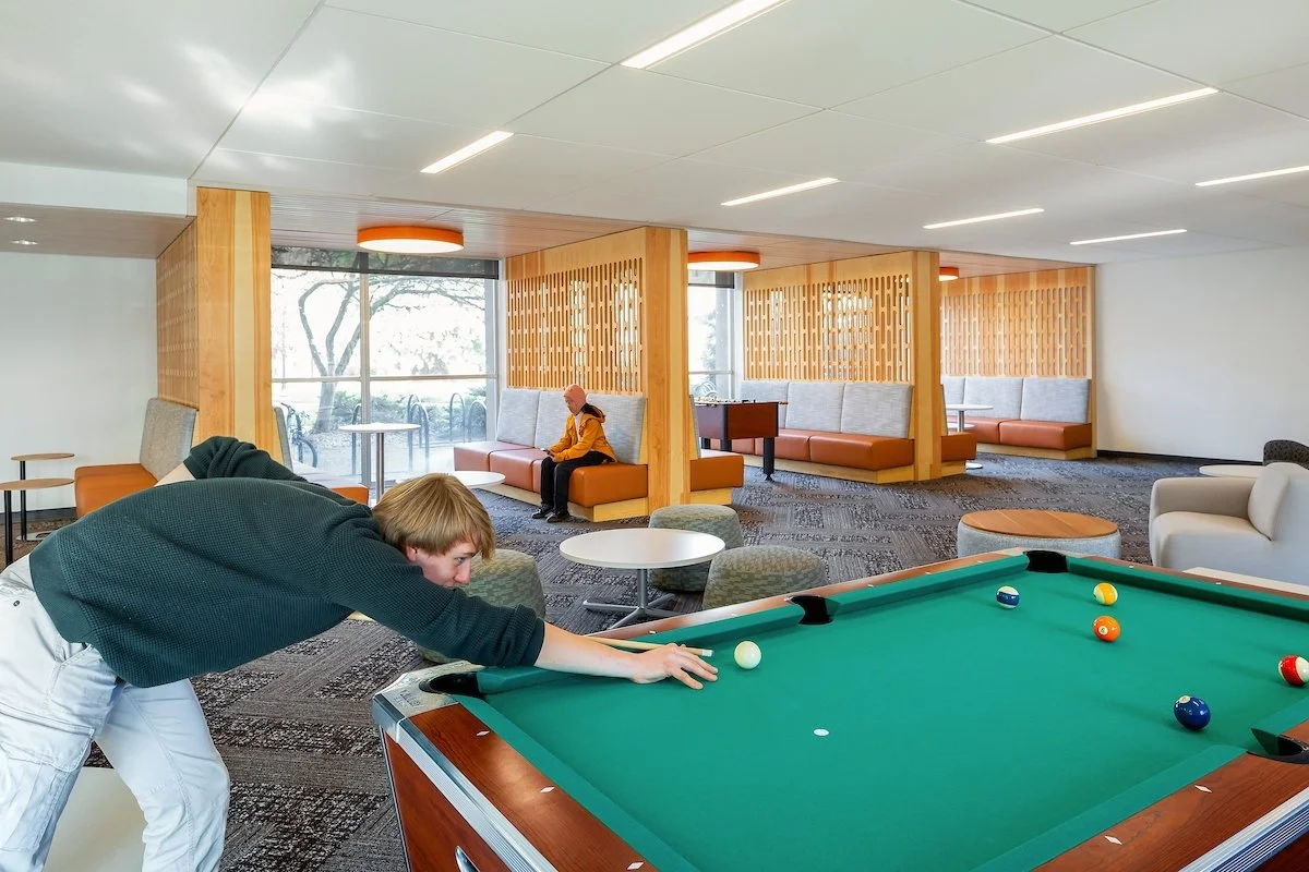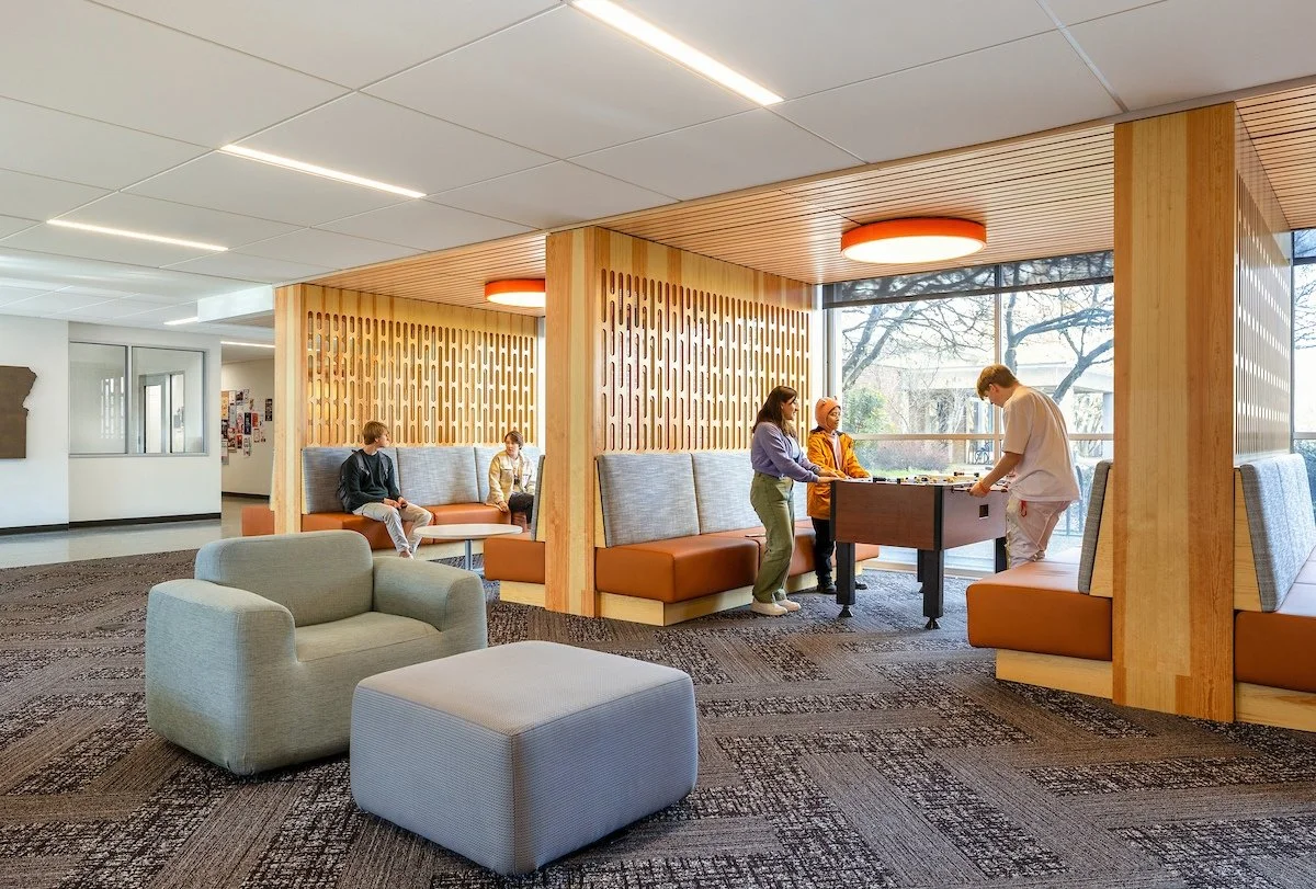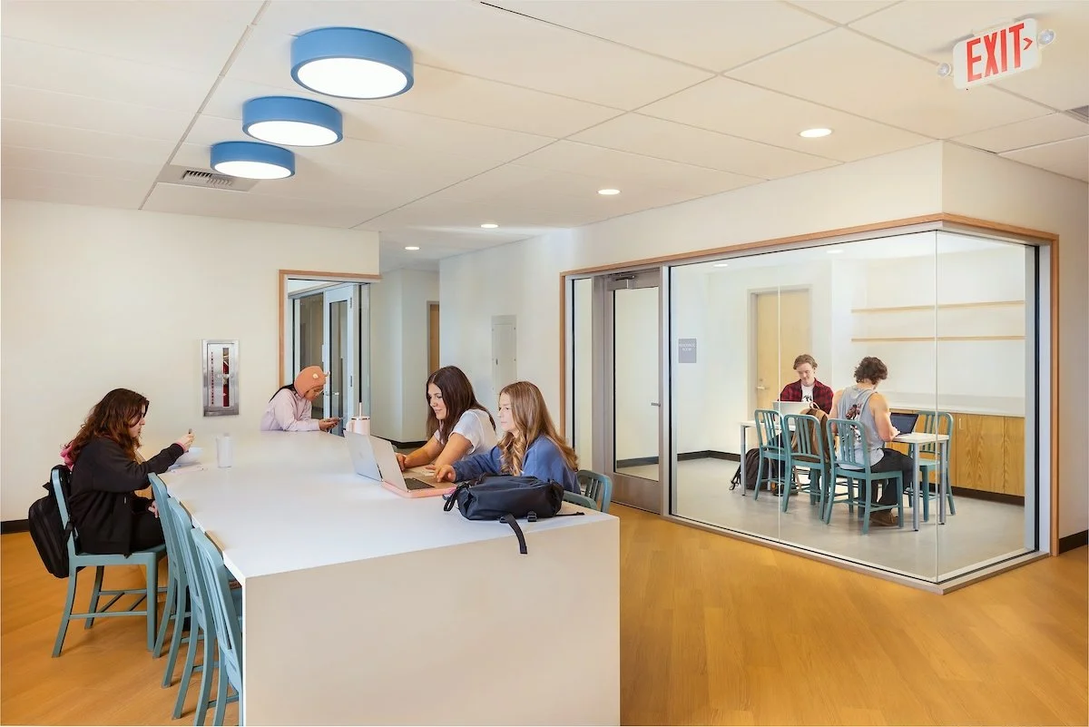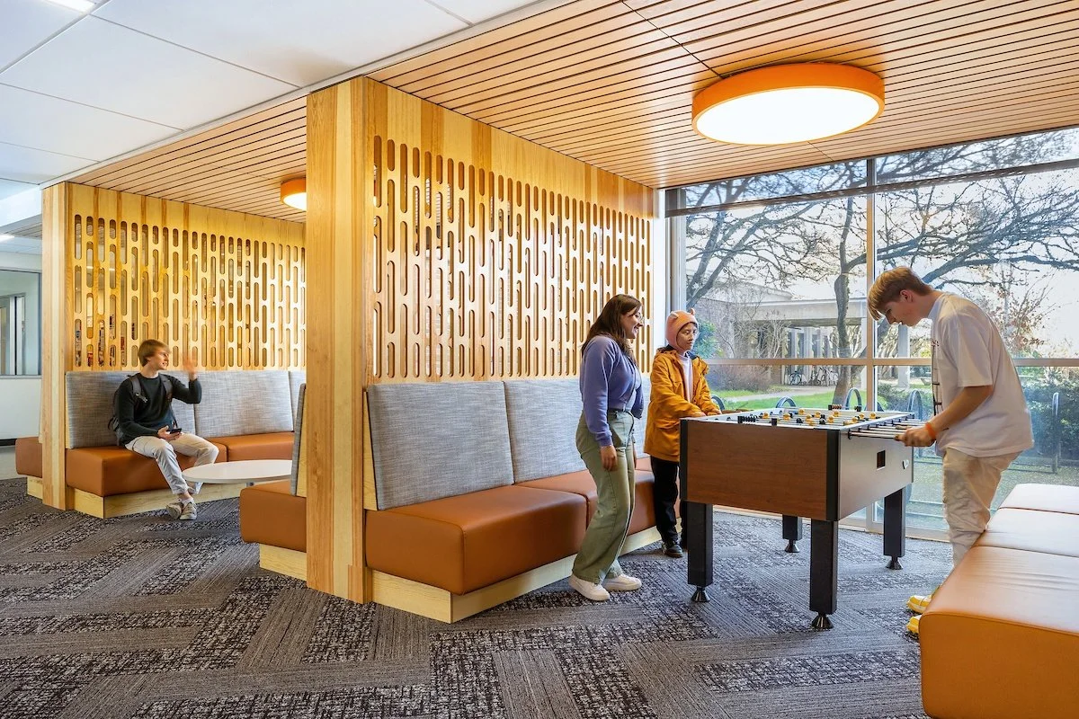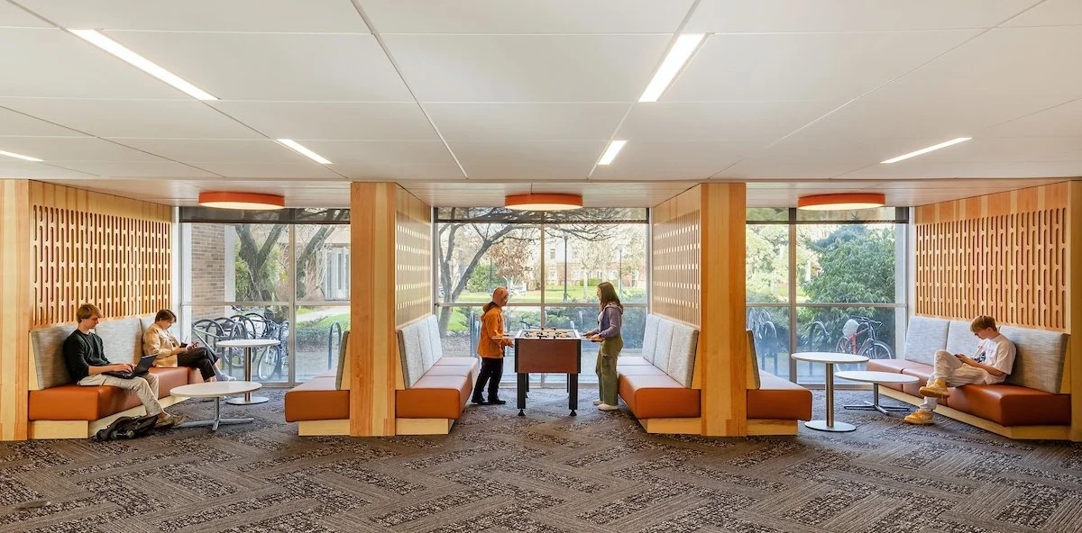 Many of the students in these residential halls are living away from family for the first time. Meal preparation and gathering is an important part of creating a new home for these students. The project catalyzes this essential form of community-building by providing comfortable, usable, and warm spaces to meet new people and share a meal.