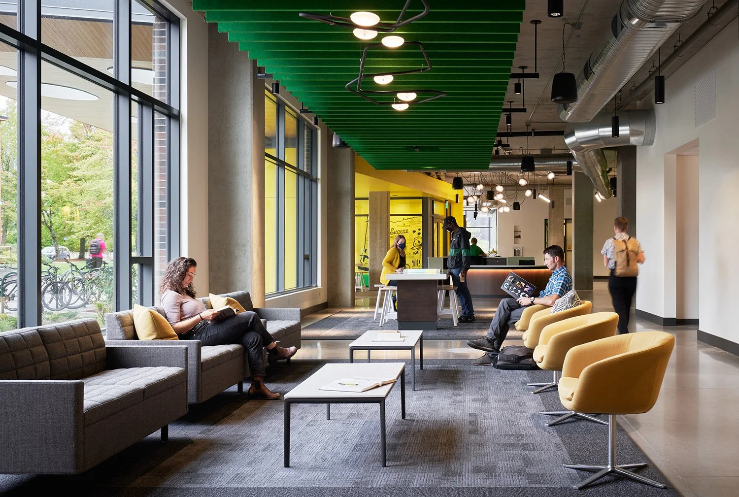 Unthank Hall will influence many students’ and parents’ first impressions of the campus and University as a whole. The first floor is home to the university’s prospective student welcome center, designed to showcase the very best the University of Oregon has to offer its incoming Ducks. This center has display spaces, model residence hall rooms, meeting spaces, and a large presentation room. It also serves as the headquarters for tour guides and a starting point for campus tours.